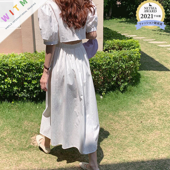 ◎【送料無料】2022春夏新作 ワンピース ロング丈ワンピース パフスリーブ レディース 韓国風 体型カバー