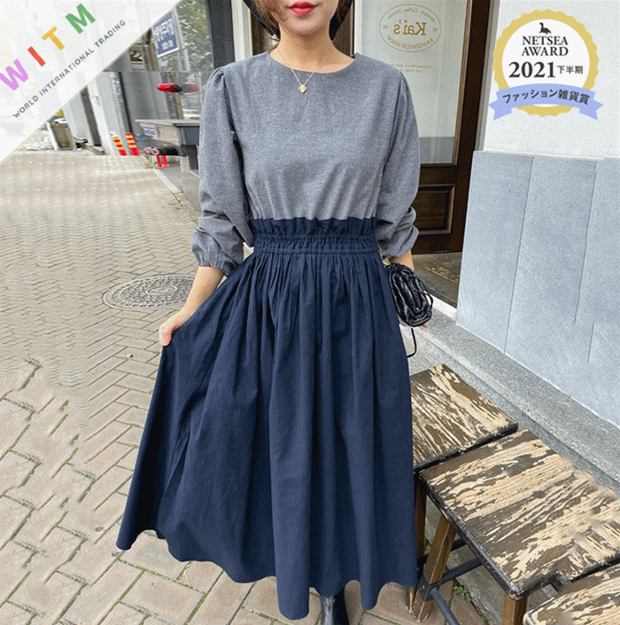 ◎【送料無料】2022春夏新作 重ね着 ワンピース ロング丈ワンピ フェイクレイヤード レディース シンプル