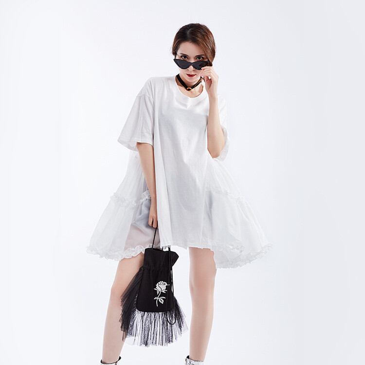 ピュアカラー ラウンドネック 花びら 半袖 ワンピース ヤングスタイル 大人気