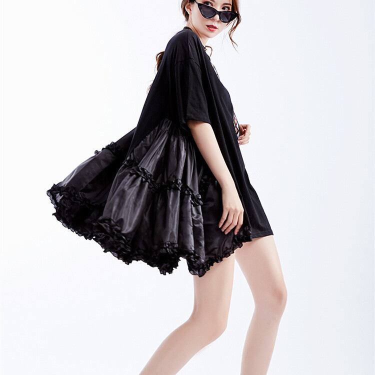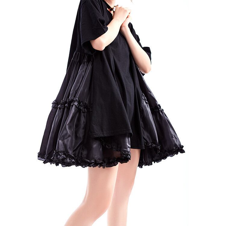 ◎【送料無料】ピュアカラー ラウンドネック 花びら 半袖 ワンピース ヤングスタイル 大人気