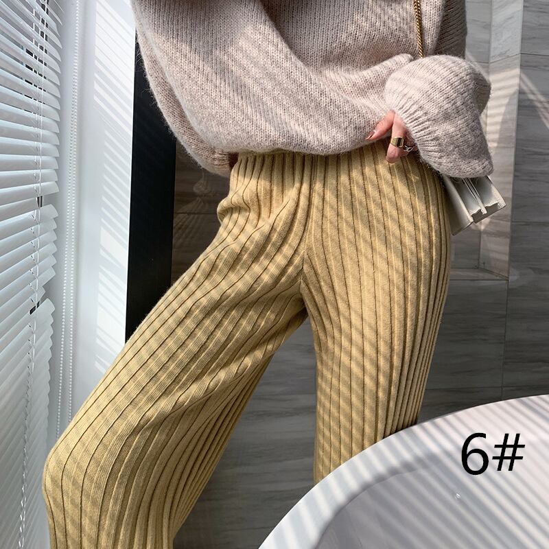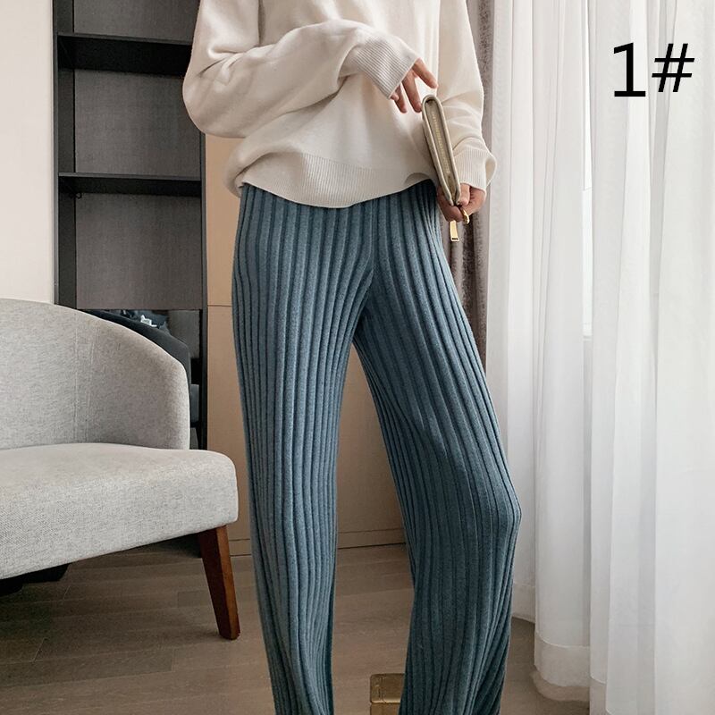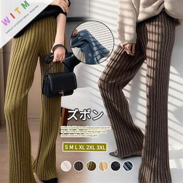 ◎【送料無料】2021新作 ロングパンツ ニットパンツ ロング丈ズボン ハイウエスト レディース 着痩せ