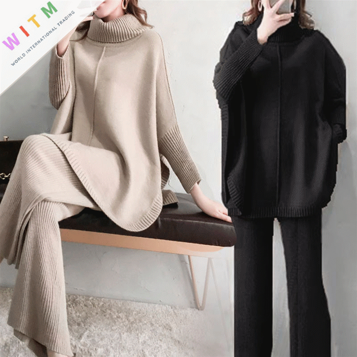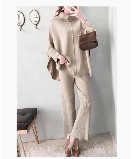 ◎【送料無料】2022新作 セーター ワイドパンツ ニットセットアップ レディース カジュアル 体型カバー 上品