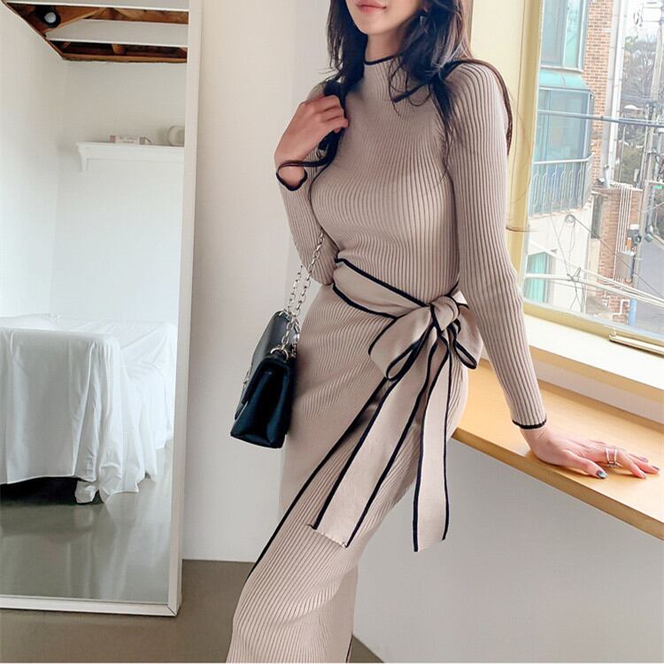気質 スリム 受け取って腰 ニットワンピース 気質 中・長セクション バンディング