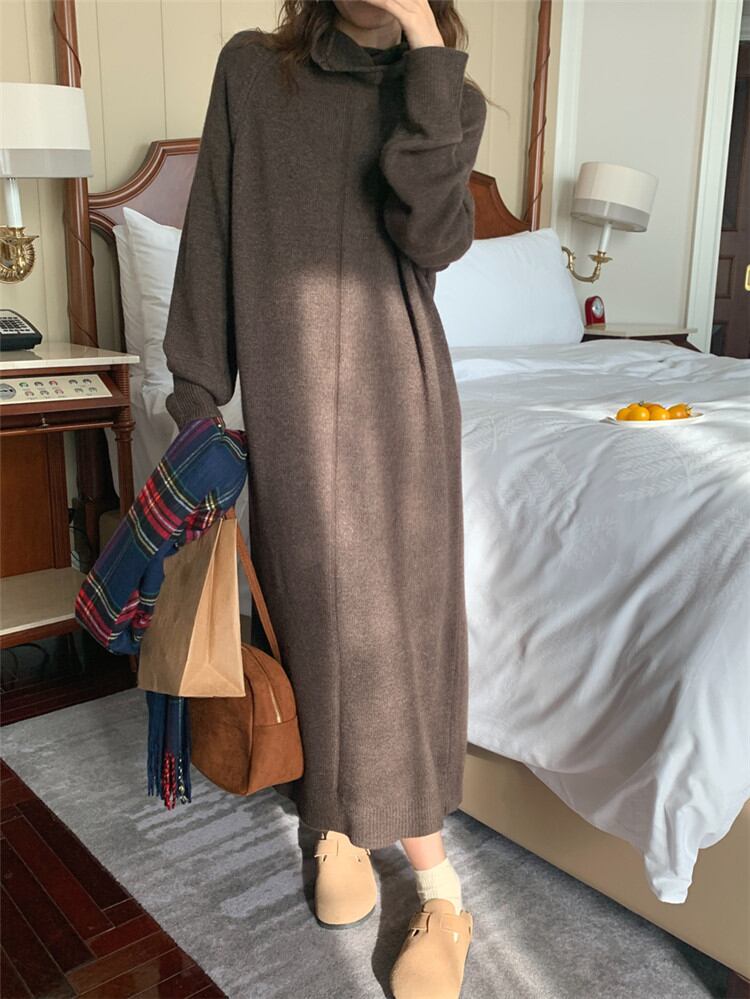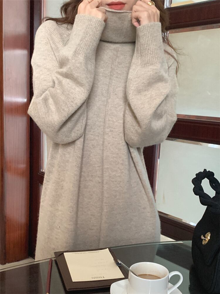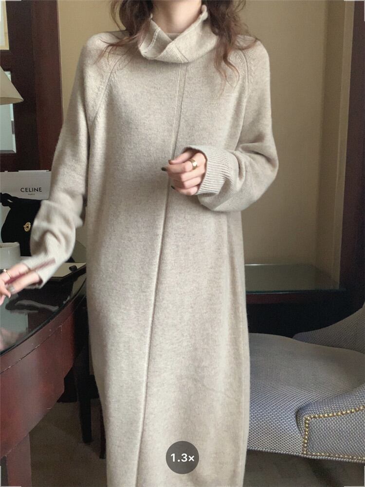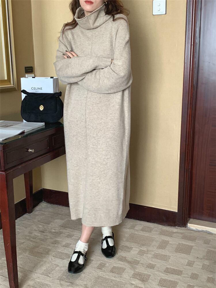 ゆったりする エレガント タートルネック ピュアカラー 暖かい 厚手 ニット ワンピース
