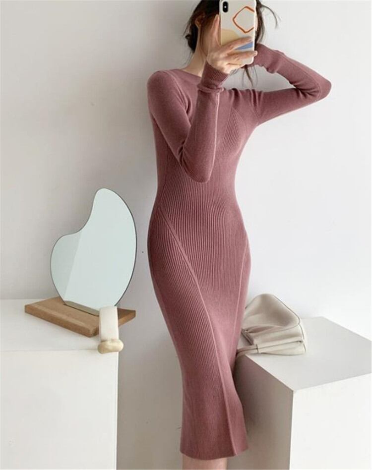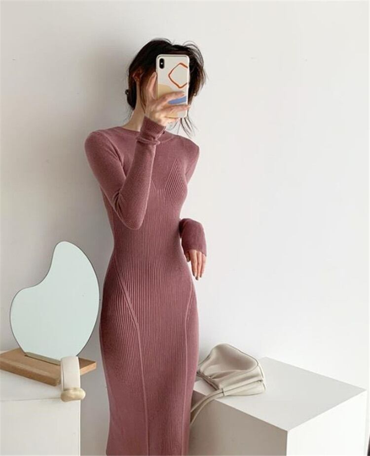 ◎【送料無料】2021年秋冬 スリム 中・長セクション タイトスカート ニットワンピース レディース