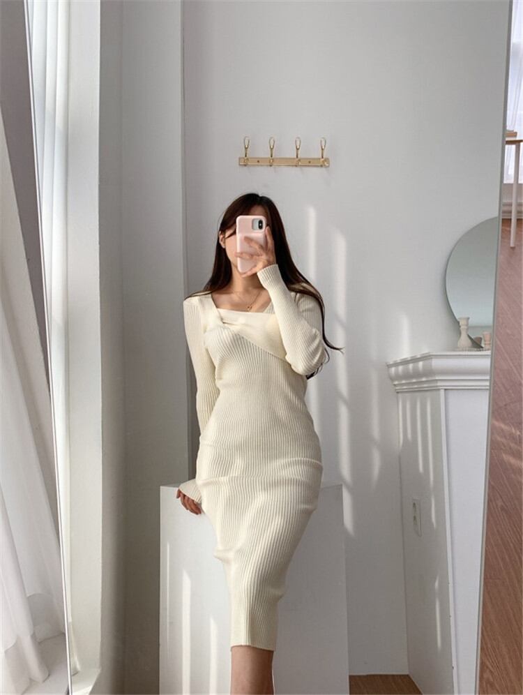 スリム ロングセクション タイトスカート ベース ニット ワンピース エレガント カジュアル