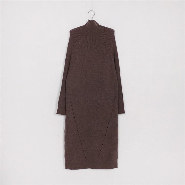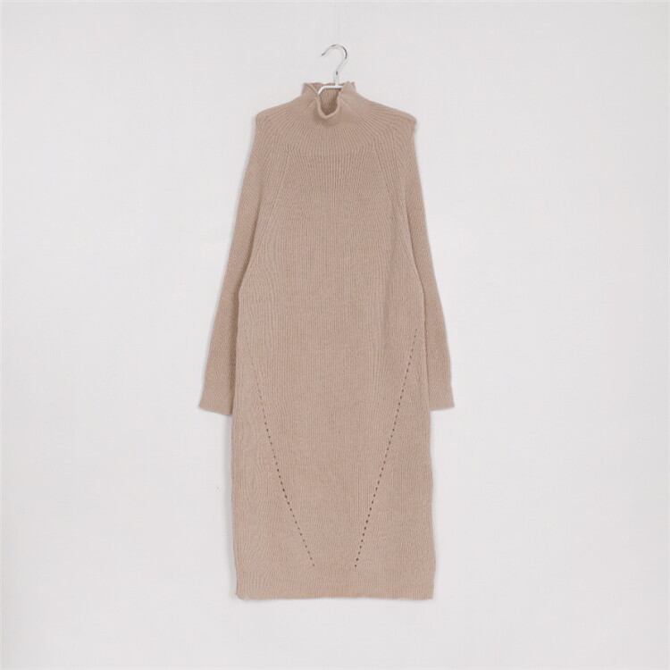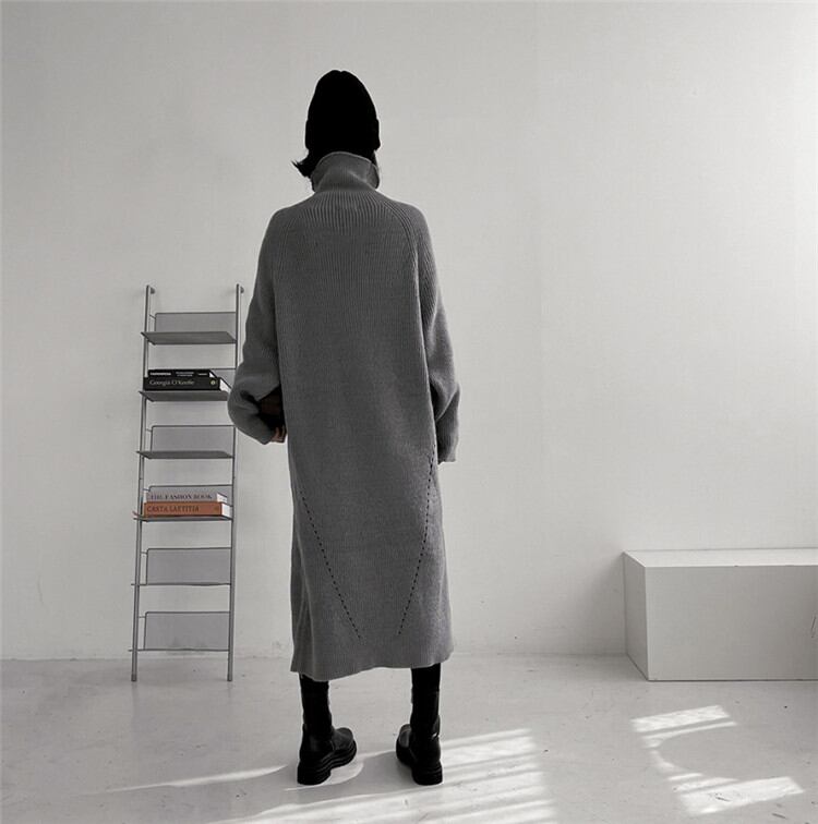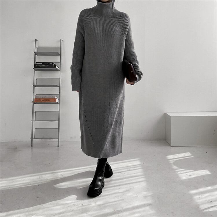 ゆったりする 怠惰な風 カジュアル ピュアカラー タートルネック 長袖 ニットワンピース