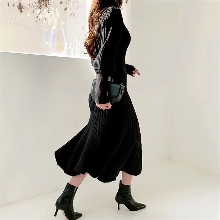 ◎【送料無料】女らしさを追求 ニット ワンピース 女性 2022年春 ニュースタイル レトロ タートルネック