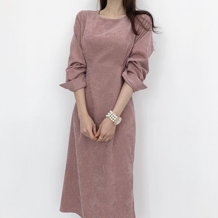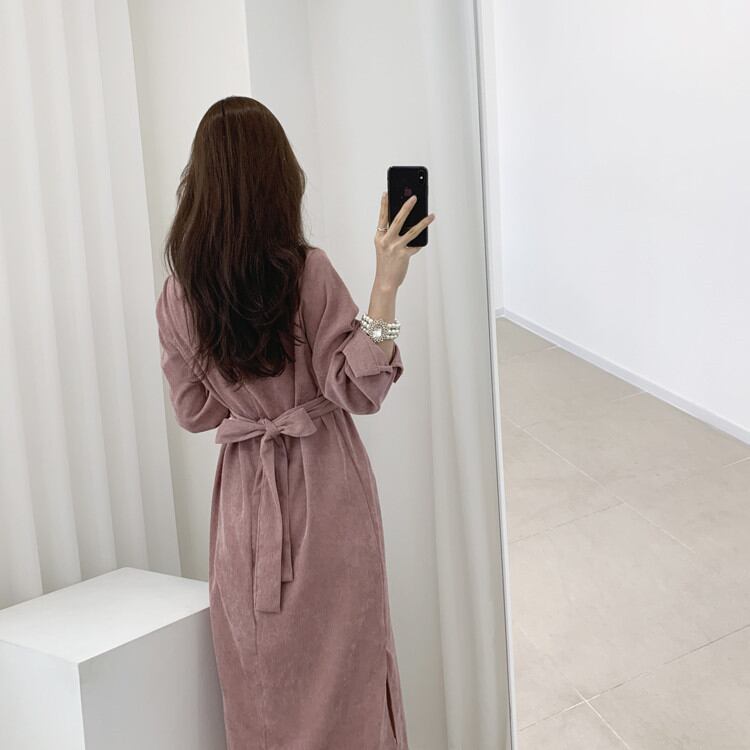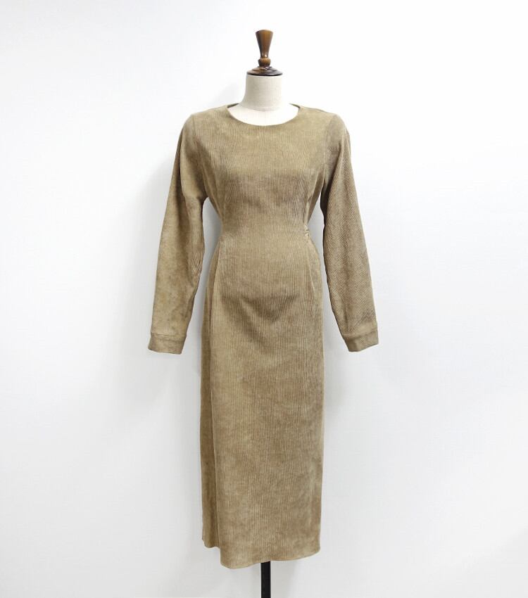 ミニマリスト コーデュロイ 受け取って腰 スリム ワンピース カジュアル 原宿BF風 大人気