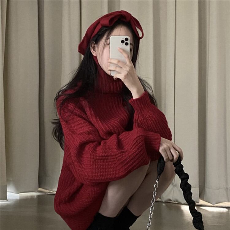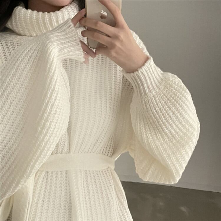 ◎【送料無料】秋冬 ニットワンピース ランタンスリーブ 大人気 クリスマス 新年 タートルネック