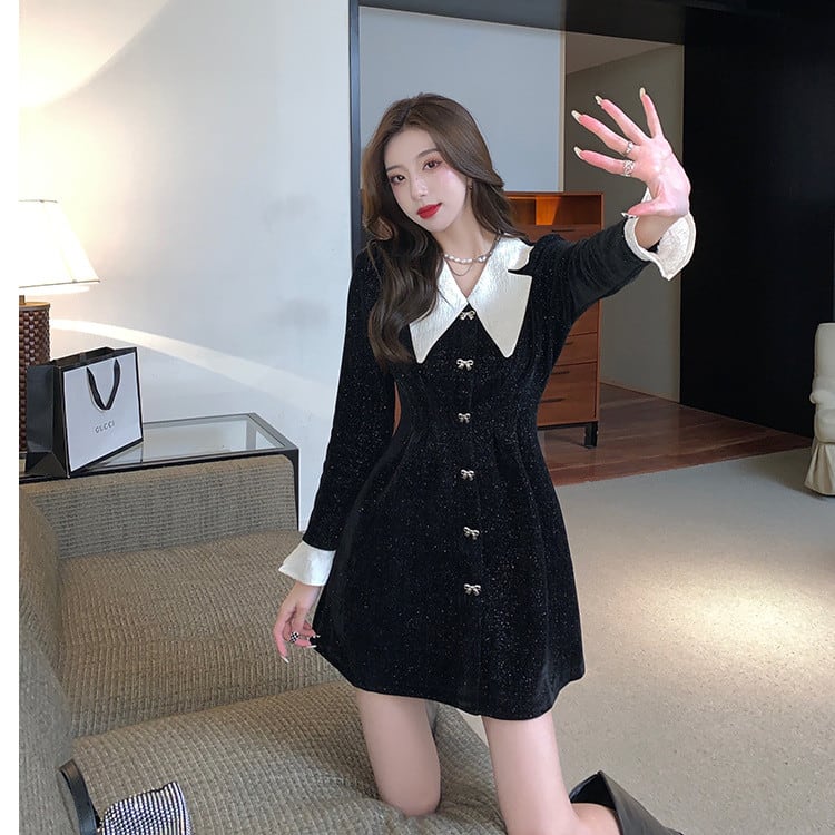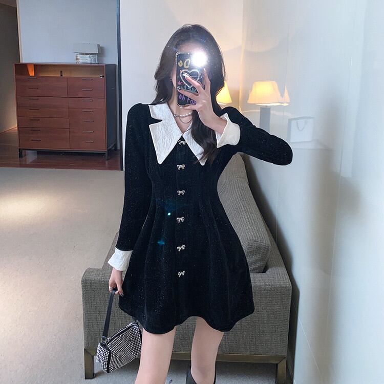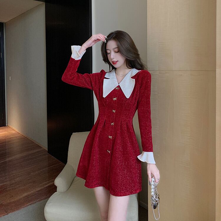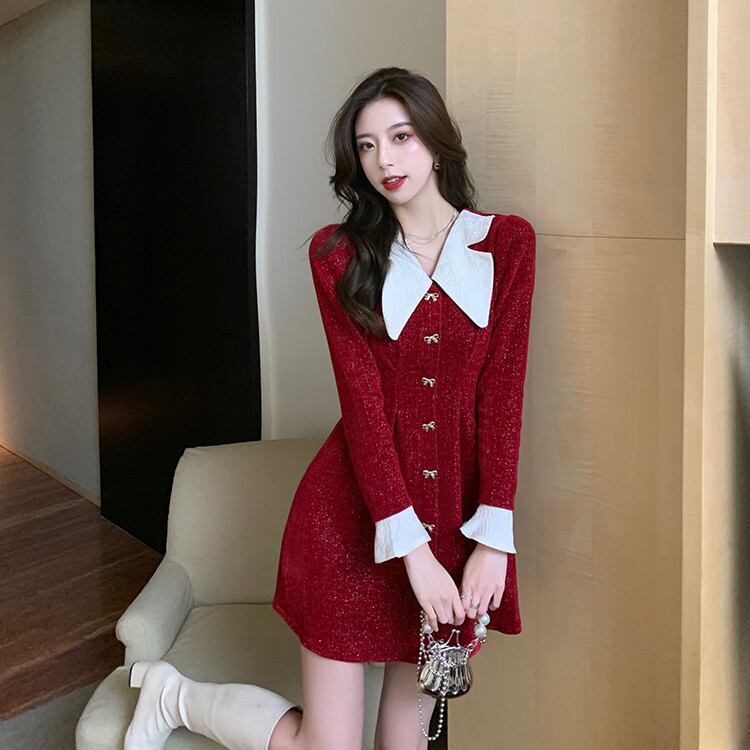 ◎【送料無料】2021 クリスマス 新年 長袖 大人気 気質 ワンピース 受け取って腰 スリム