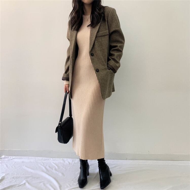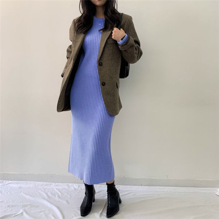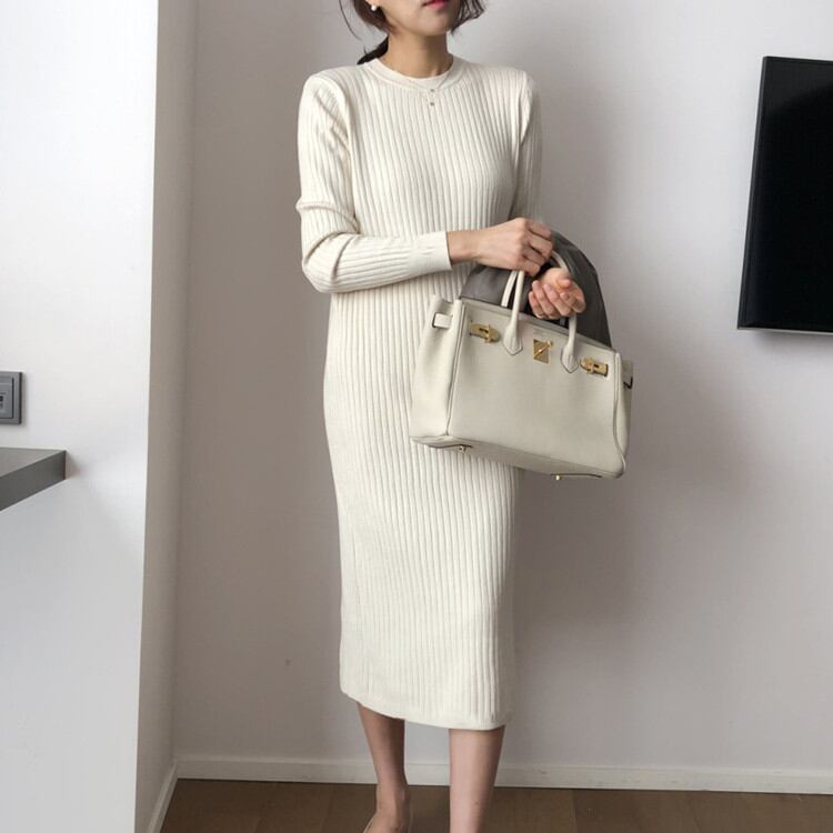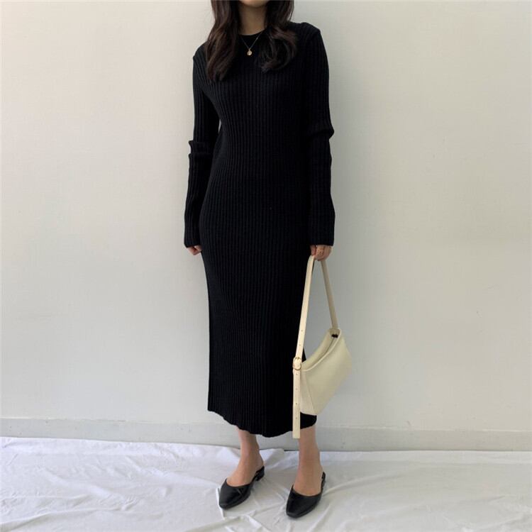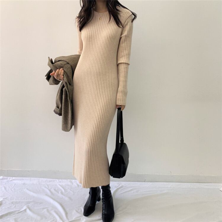 セーター ロングセクション ジェントルスタイル 気質 ラウンドネック ニット ワンピース
