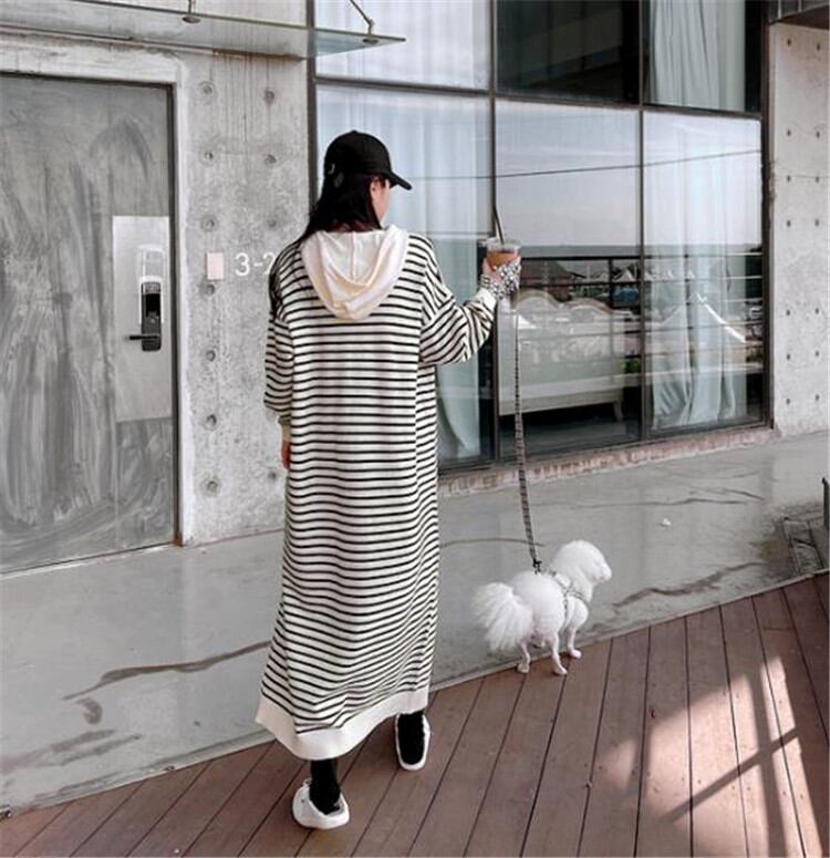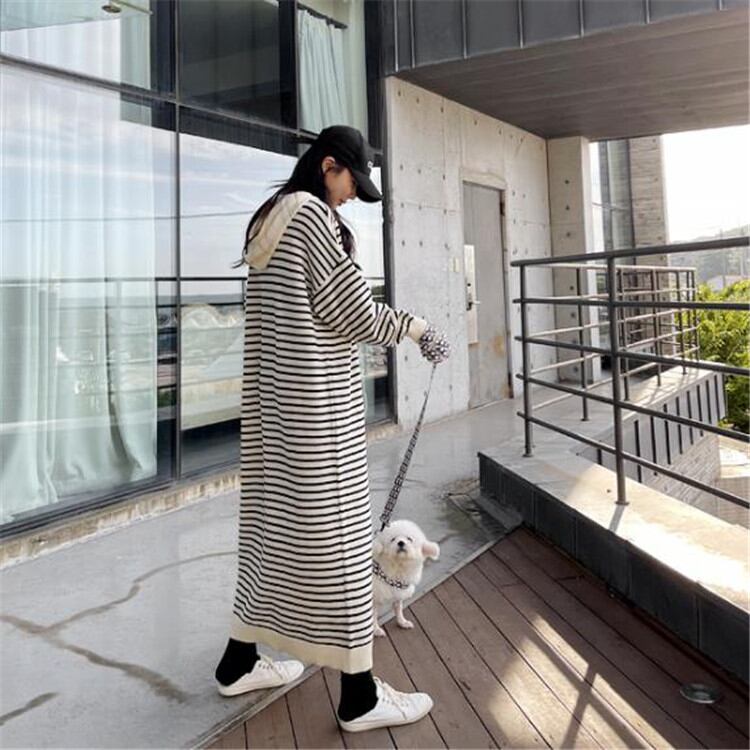 ◎【送料無料】体型カバーと可愛いを両立 ロングセクション ニット フード付き ゆったりする 暖かい 厚手 セーター