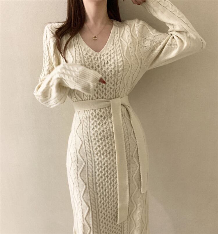 Vネック 麻の花 ロングセクション スプリット ワンピース 受け取って腰 エレガント 大人気