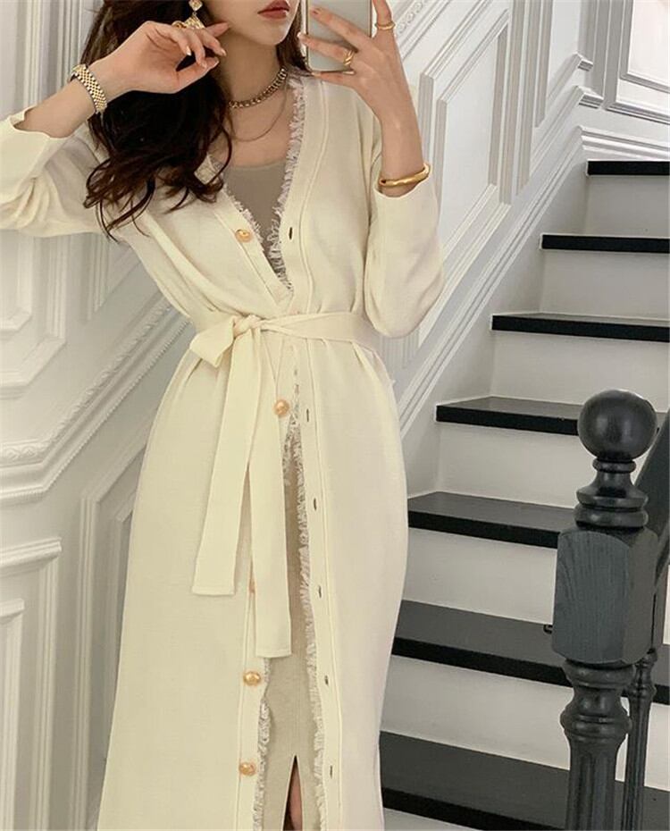 受け取って腰 単体ボタン ニット ワンピース ロングスカート エレガント シンプル 大人気