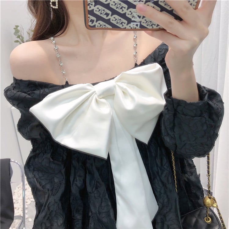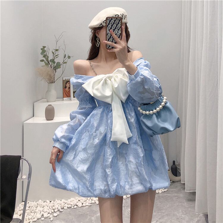 長袖 スリム ワンピース Aライン 蝶結び ベアトップ オフショルダー sweet系