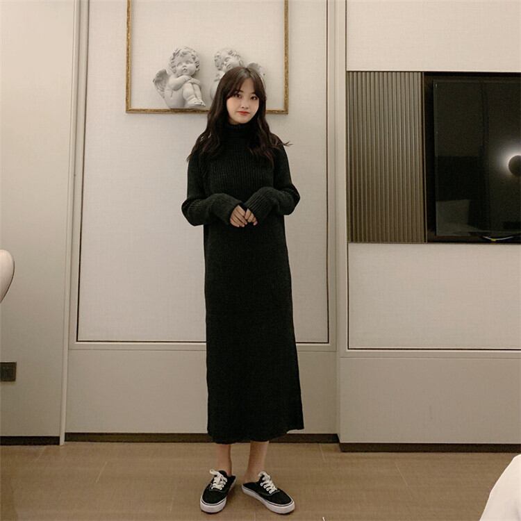 ◎【送料無料】冬服 ニット ゆったりする 中・長セクション タートルネック 厚手 ニットワンピース