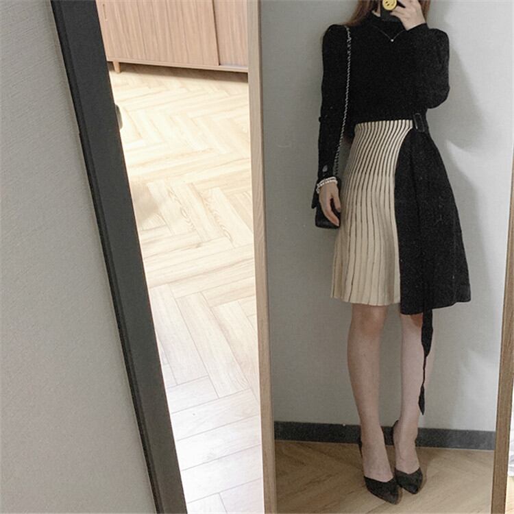 ニット ワンピース カラーマッチング ニットワンピース 暖かい 厚手 エレガント カジュアル 大人気