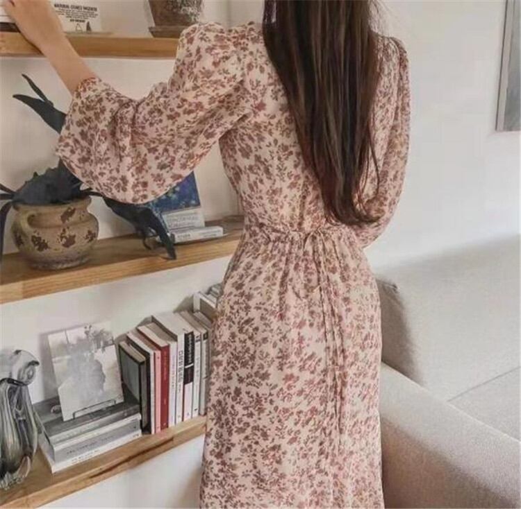 フローラル 受け取って腰 フォールド パフスリーブ ワンピース 気質 エレガント