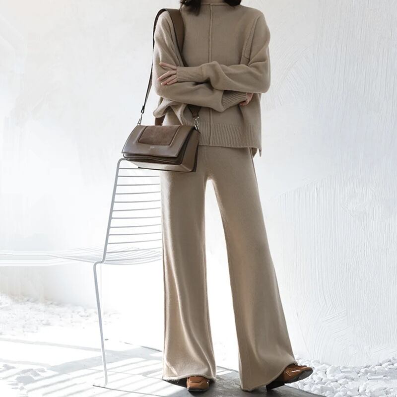 ◎【送料無料】2021秋冬新作 セーター ワイドパンツ ニットセットアップ ロング丈パンツ レディース カジュアル