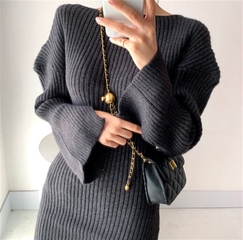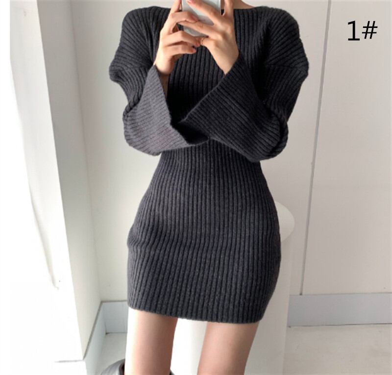 ◎【送料無料】2021秋冬新作 ワンピース ニットワンピース ミニ丈 韓国風 レディース フレア袖 上品