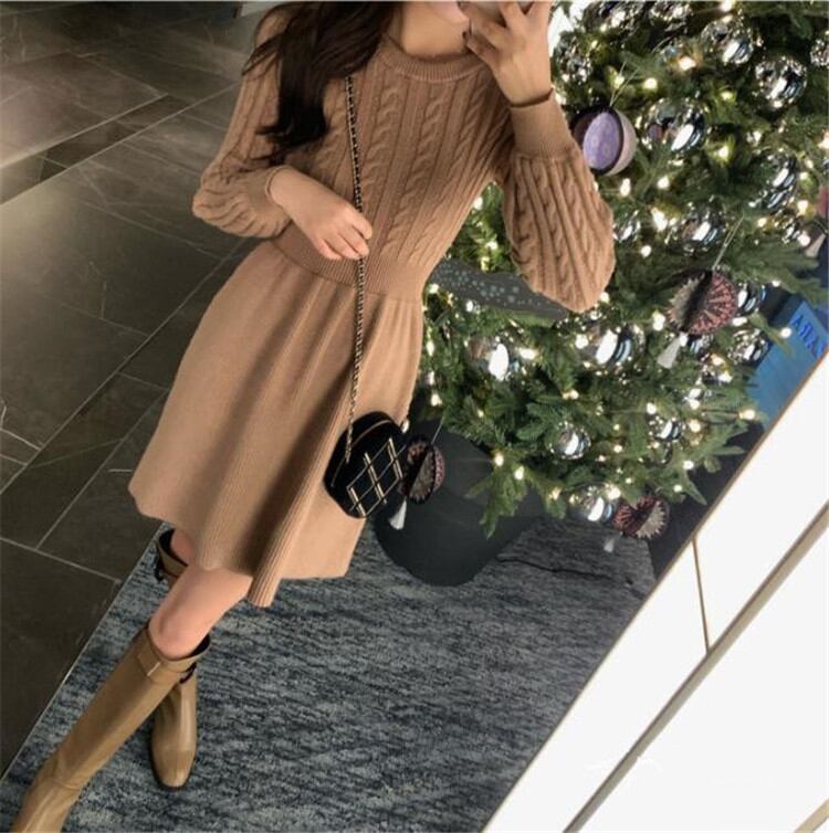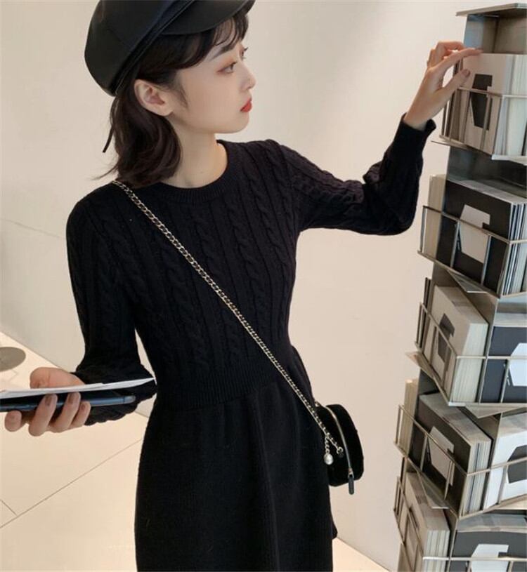 2021年秋冬新作 細身 ハイウエスト スリム ニット 麻の花 縫付 ワンピース