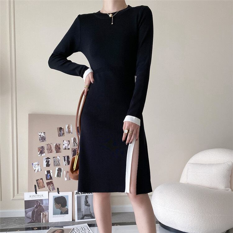 ◎【送料無料】スプリット 中・長セクション 2021年秋新作 長袖 ワンピース 受け取って腰