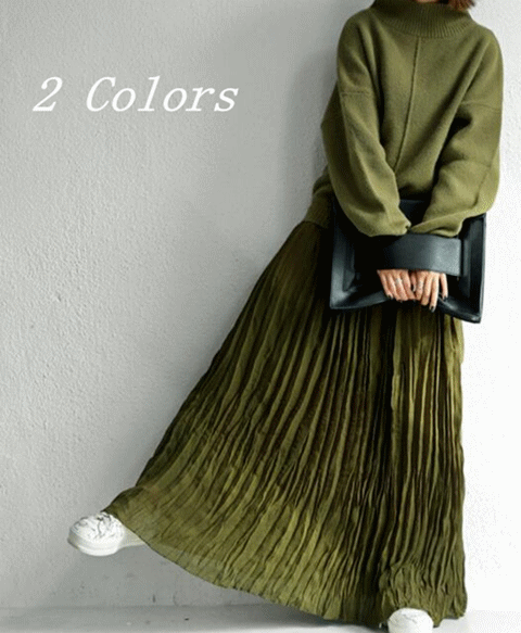 ◎【送料無料】2021秋冬新作 ワンピース ロングワンピース 異素材MIX プリーツ セーター レディース 体型カバー 上品