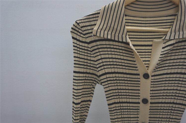 ◎【送料無料】程良い辛さを効かせたデザイン ラペル 単体ボタン ボーダー スプリット ニット ワンピース スリム