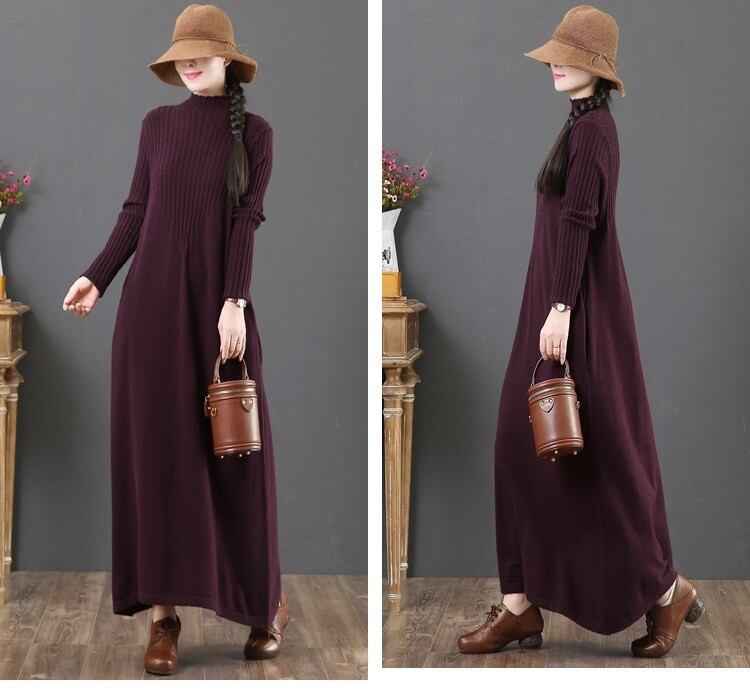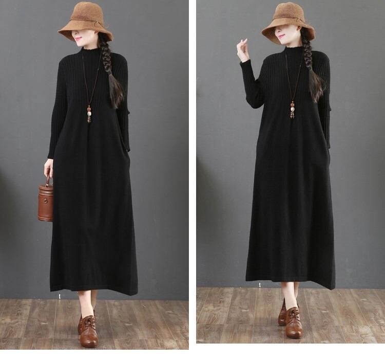 カジュアル 女性 大人気 ニット ワンピース ゆったりする タートルネック ピュアカラー