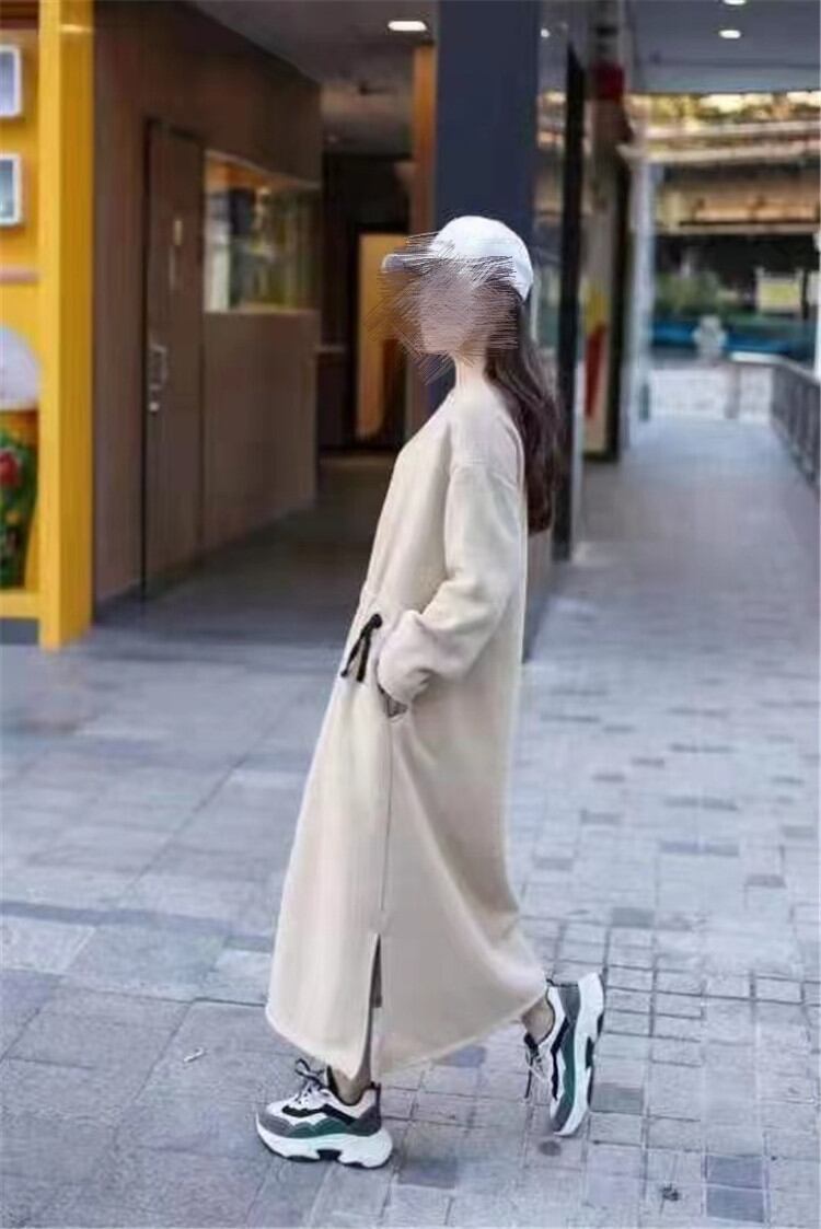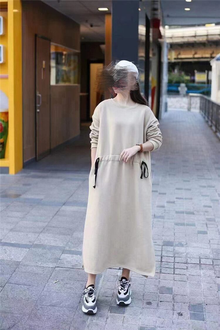 長袖 ワンピース 女性 ラウンドネック ゆったりする ロングセクション ピュアカラー カジュアル 暖かい 厚手