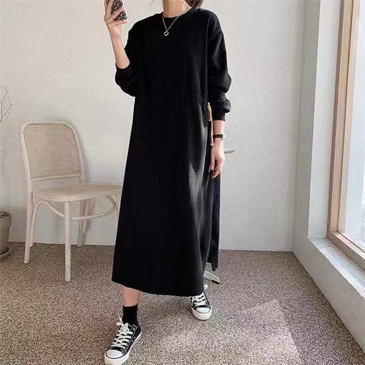 ◎【送料無料】シンプルで持ちやすくて機能的 長袖 ワンピース 女性 ラウンドネック ゆったりする ロングセクション
