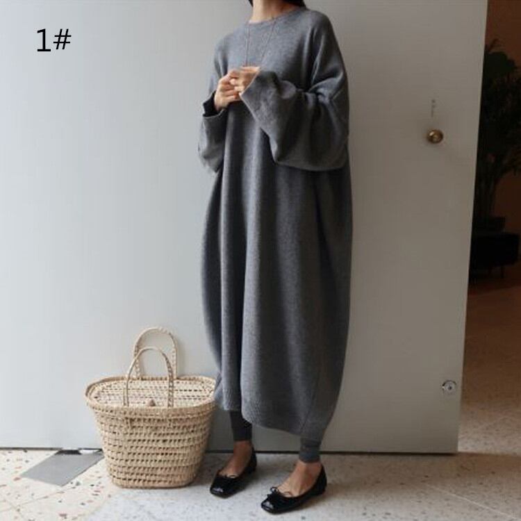 ◎【送料無料】2021秋冬新作 ワンピース ニットワンピース ロング丈 韓国風 レディース 体型カバー 上品 トレンド