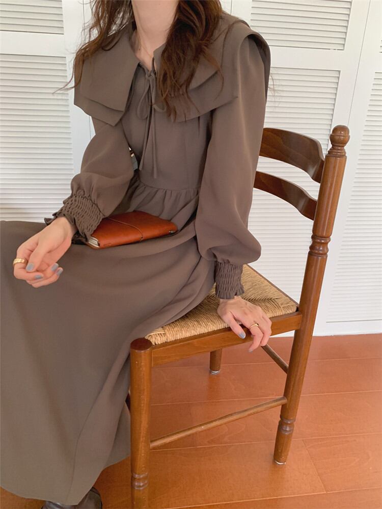◎【送料無料】通勤スタイルも秋顔に レトロ ラペル 減齢 バンディング ゆったりする ワンピース ピュアカラー