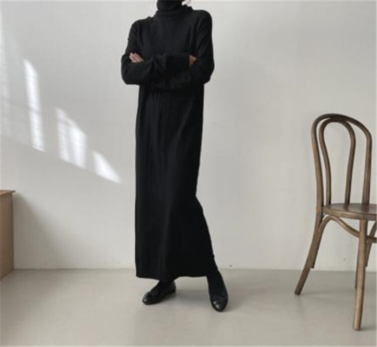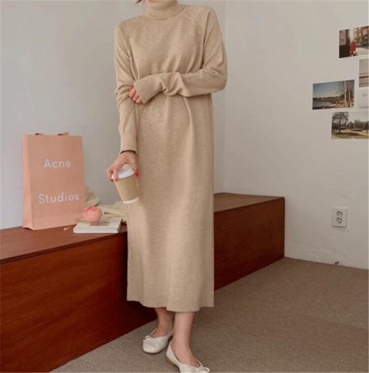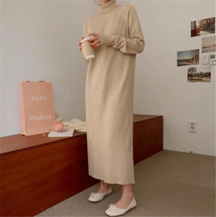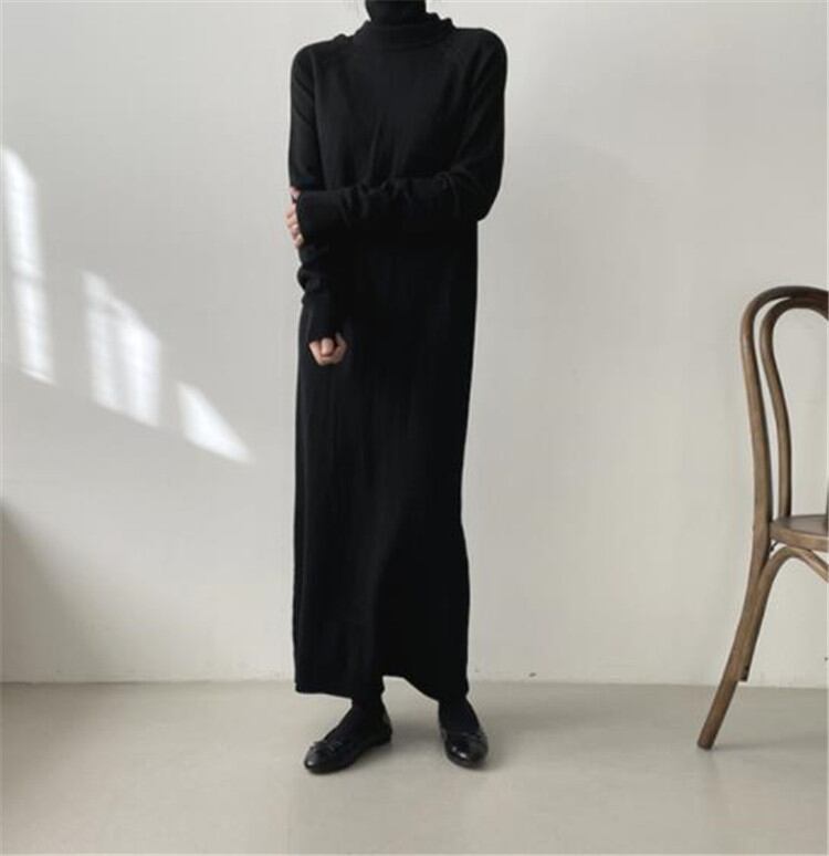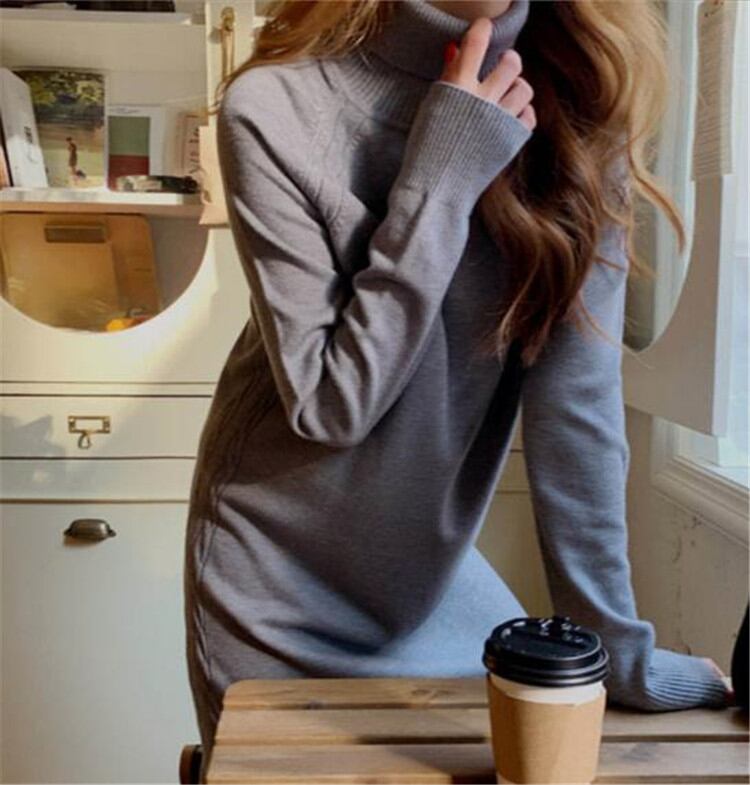 ワンピース タートルネック ロングセクション セーター シンプル 秋 冬 ゆったりする