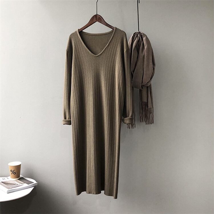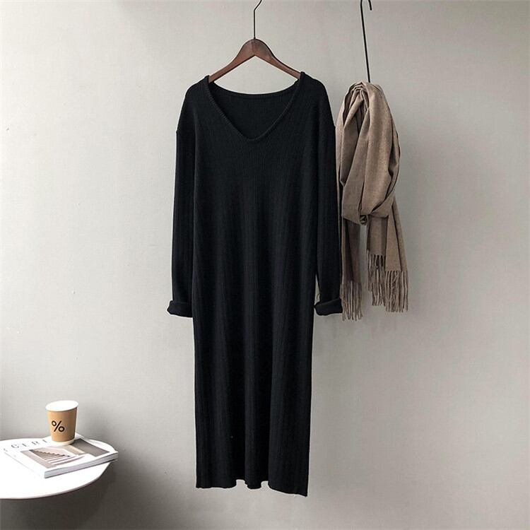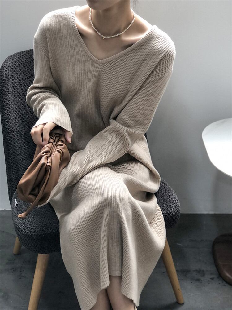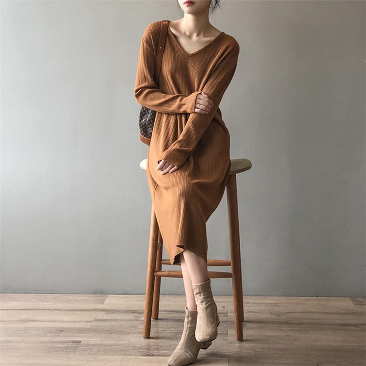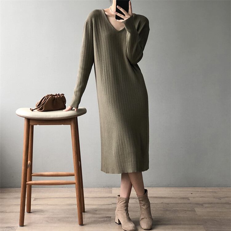 ◎【送料無料】きちんと感をGET Vネック ニット ワンピース 女性 2021年秋 冬 新作 暖かさ スリム ベースシャツ