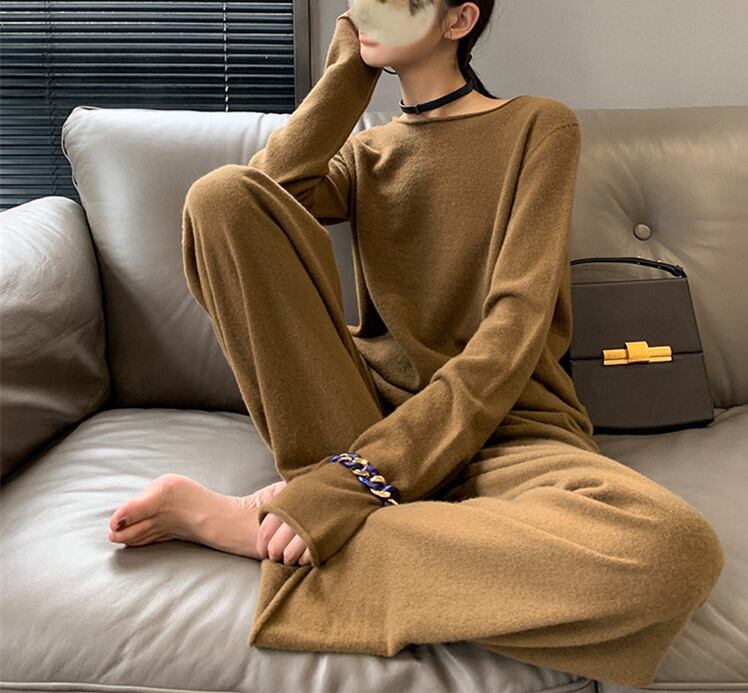 ◎【送料無料】2021秋冬新作 セーター パンツ ニットセットアップ ニットワイドパンツ トレンド カジュアル 上品