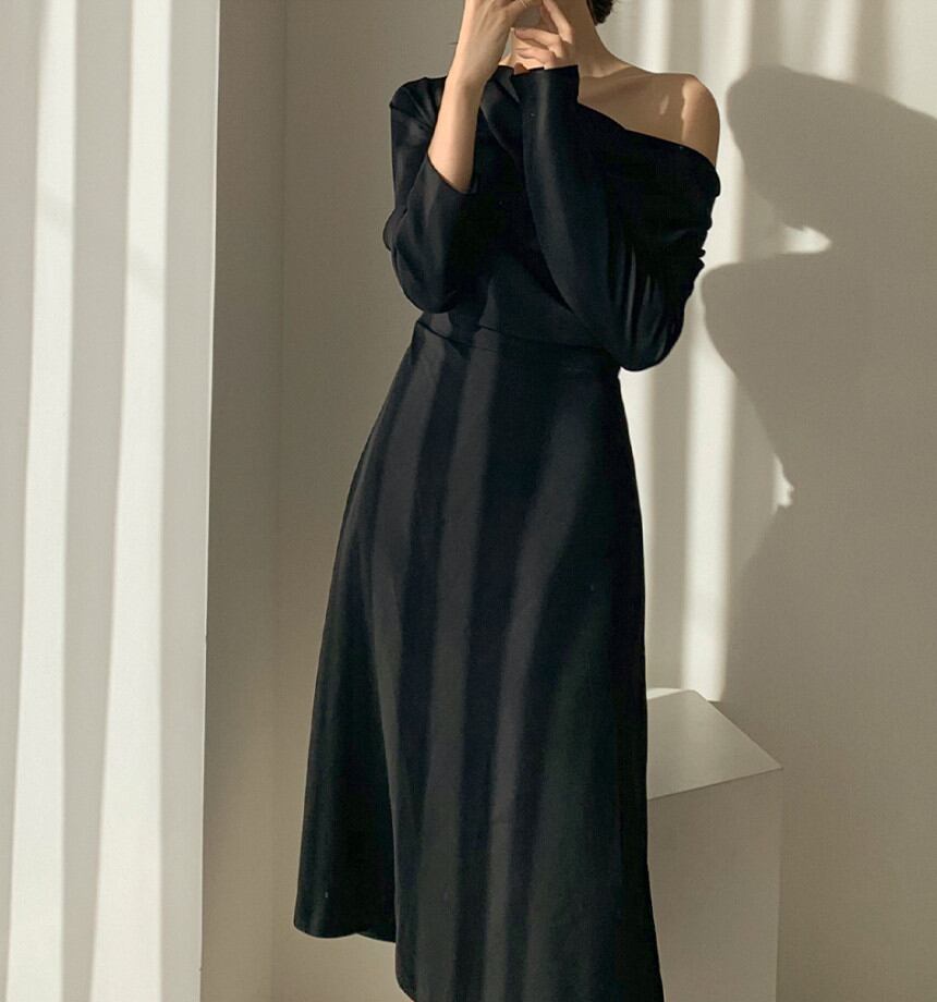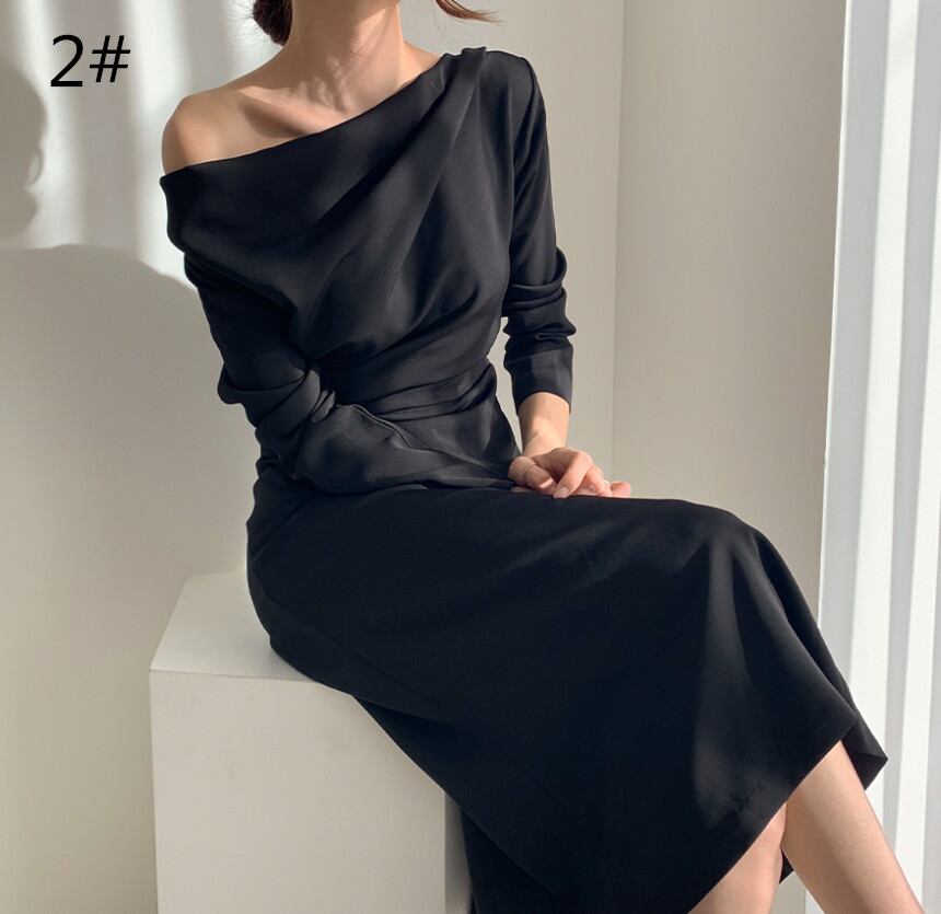 ◎【送料無料】2021秋新作 ワンピース ロングワンピース ボートネック 長袖 体型カバー レディース 上品 オシャレ