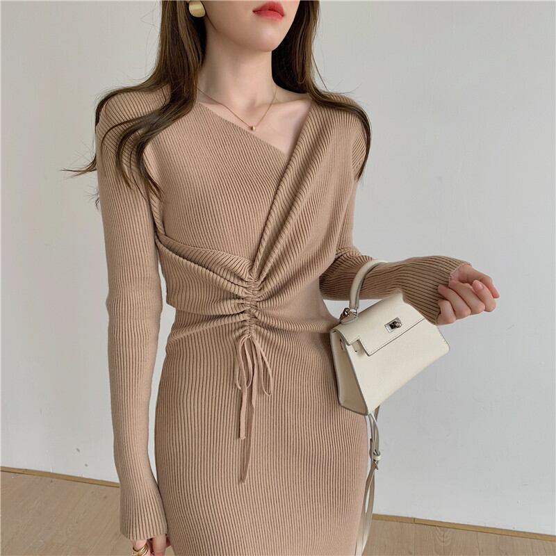 ◎【送料無料】2021秋冬新作 ニットワンピース ロングワンピース 韓国風 レディース 上品 女性らしい