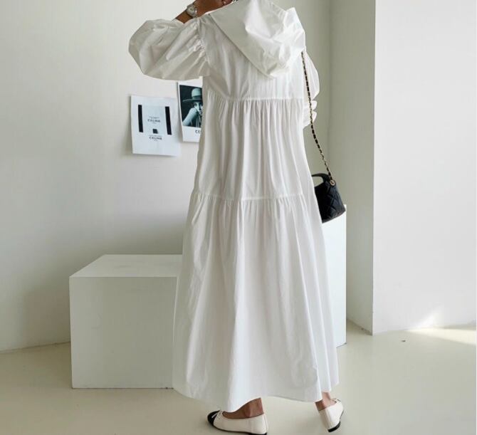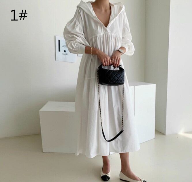 ◎【送料無料】2021秋新作 ワンピース ロングワンピース パフスリーブ フード付き 体型カバー 着痩せ カジュアル オシャレ