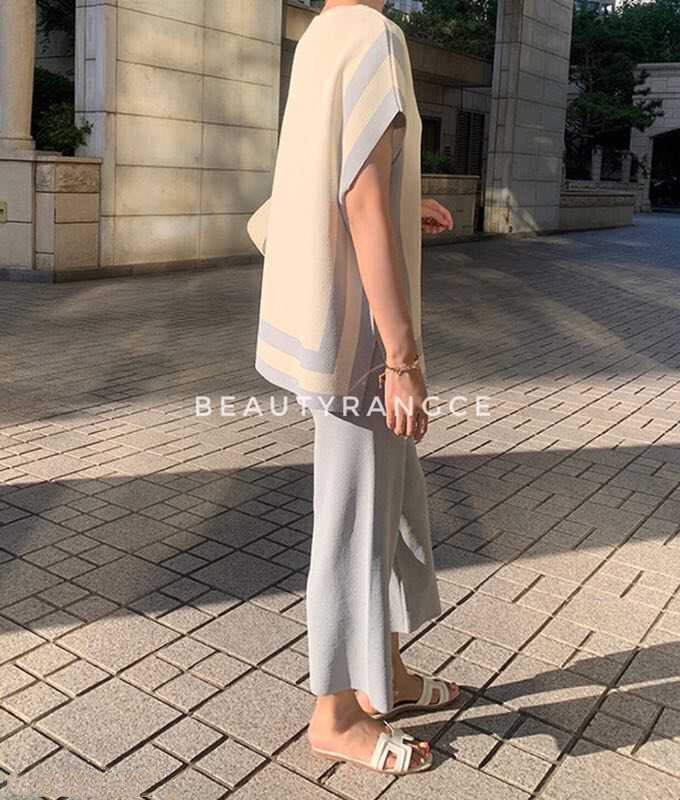 ◎【送料無料】2021新作 カットソー パンツ 2点 セットアップ ワイドパンツ トレンド カジュアル 大人可愛い 上品