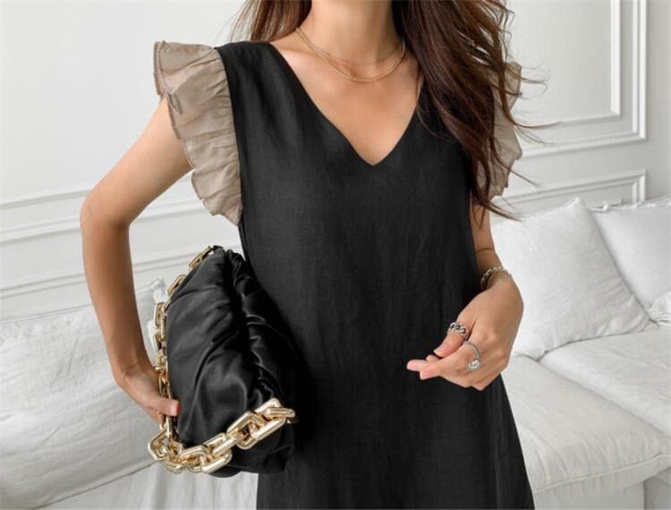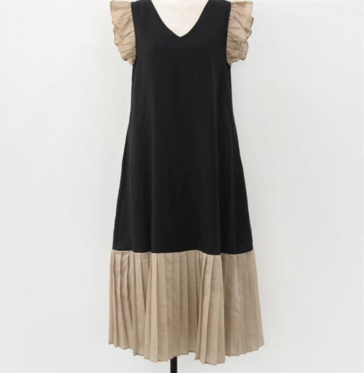 ◎【送料無料】大人のキレイをお約束 早い者勝ちc ゆったりする スリム ヒットカラー 縫付 プリーツ 袖なし ワンビース