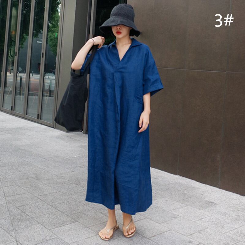 ◎【送料無料】2021新作 ワンピース マキシワンピース ロングワンピース Vネック 体型カバー 5分袖 着痩せ 春 夏 秋