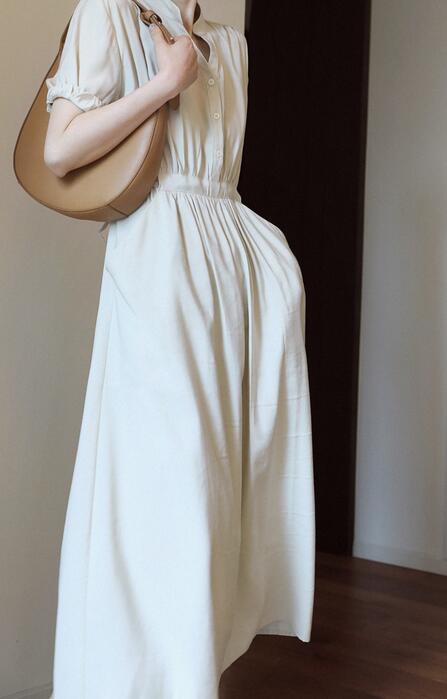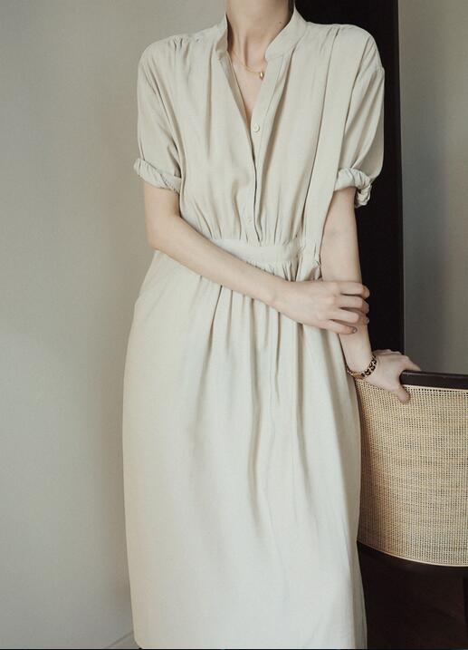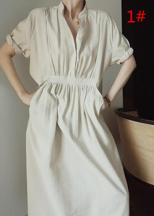 ◎【送料無料】★2021春夏新作★ワンピース ロング丈ワンピース レトロ調 半袖 カジュアル 体型カバー 着痩せ きれいめ