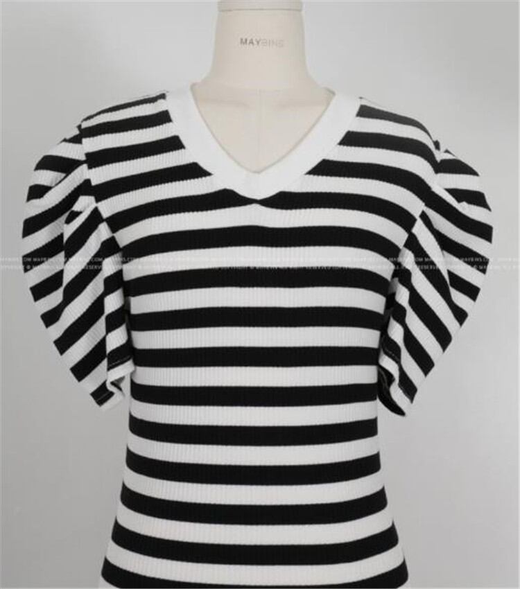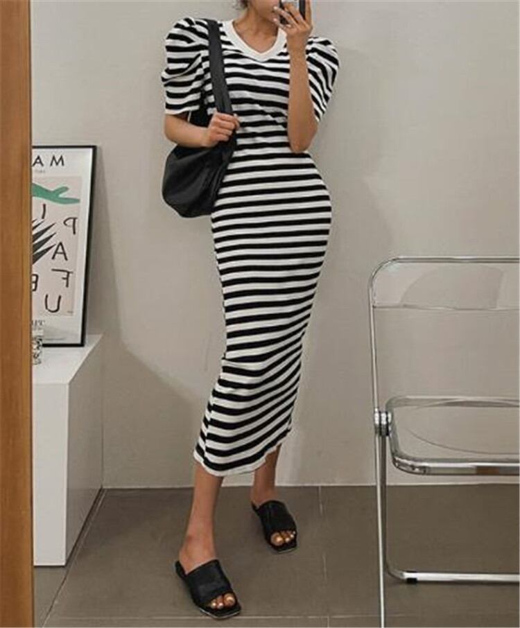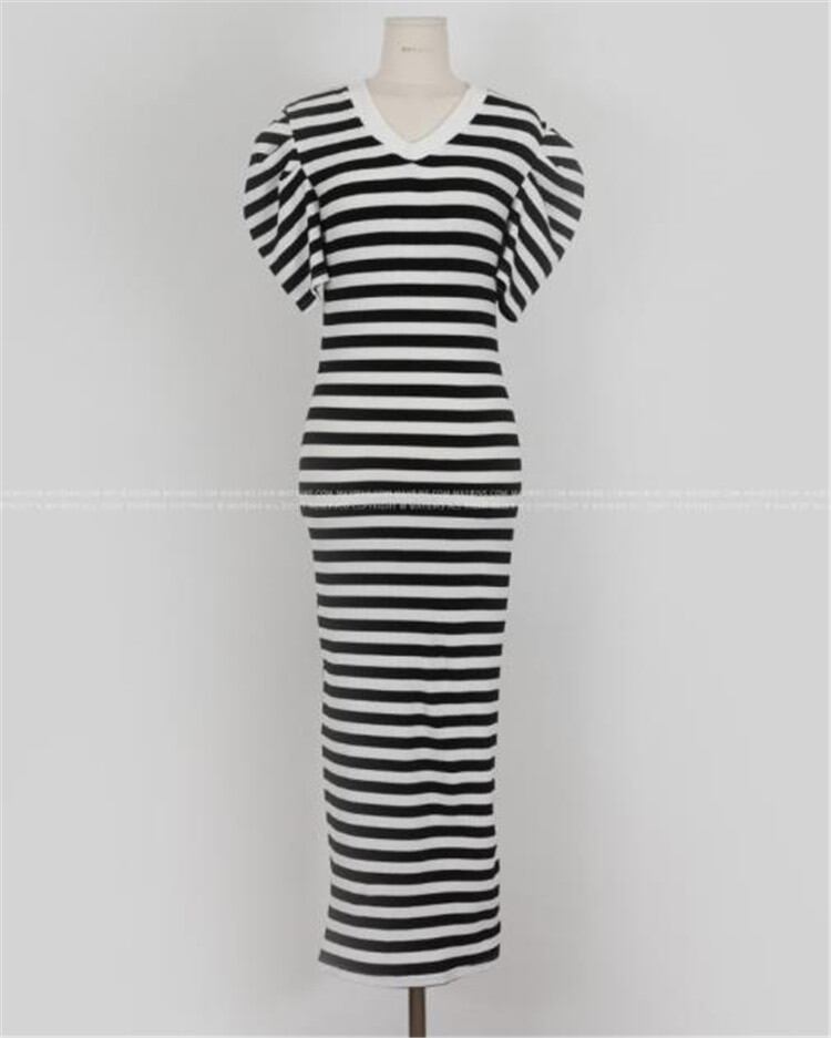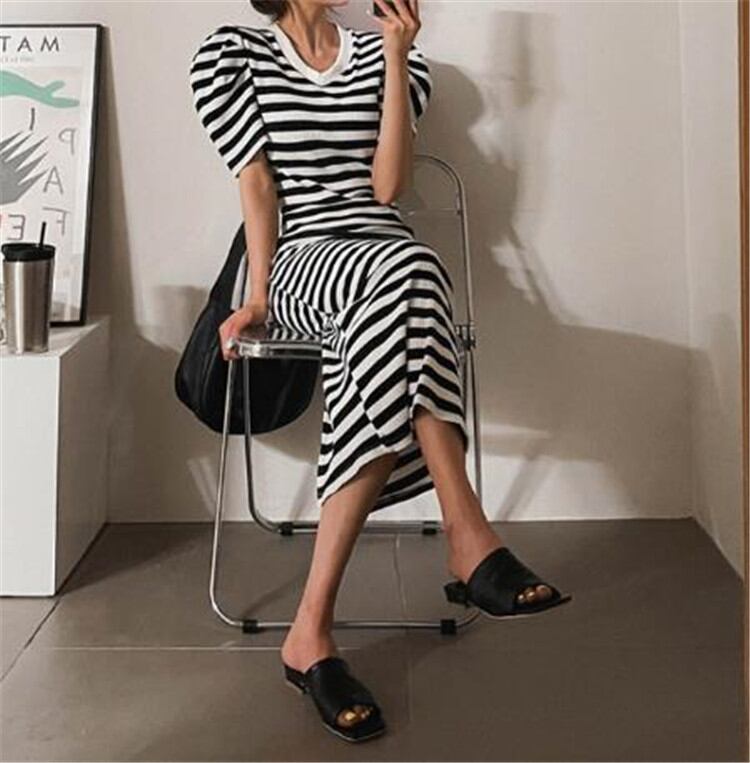 半袖 ワンピース 百掛け カジュアル トレンド 韓国 2021年夏 新作 Vネック ボーダー