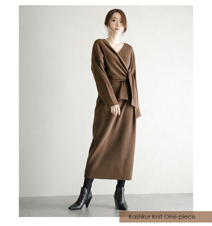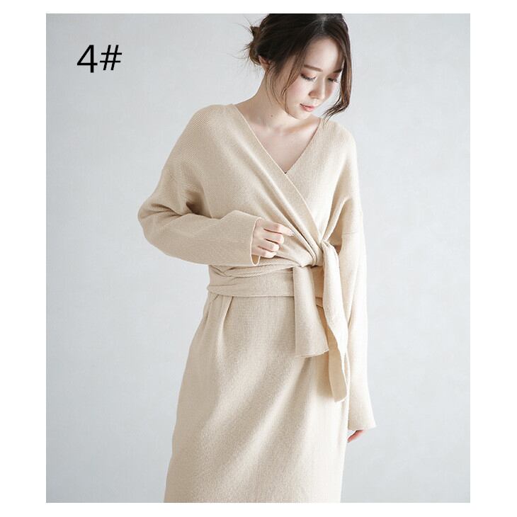 ◎【送料無料】秋冬新作 ニットワンピース マキシワンピース ロング丈ワンピ リボン付き 大人の魅力 エレガント