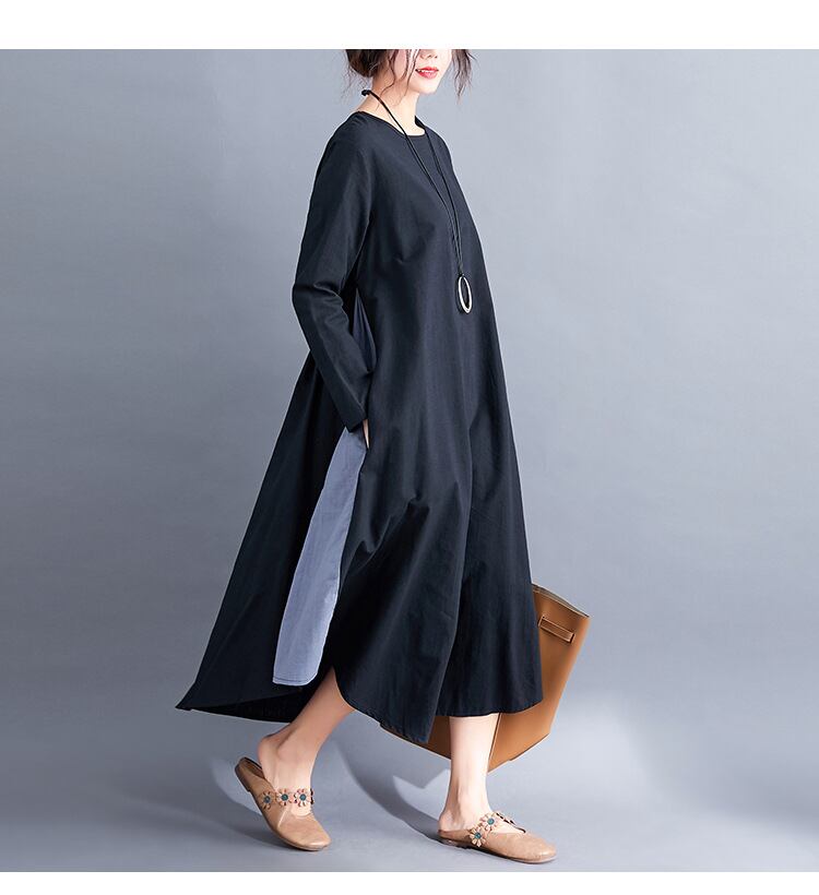 ◎【送料無料】秋冬新作 ワンピース 新作ワンピース ラウンドネック ロングワンピ 体型カバー ゆったりサイズ