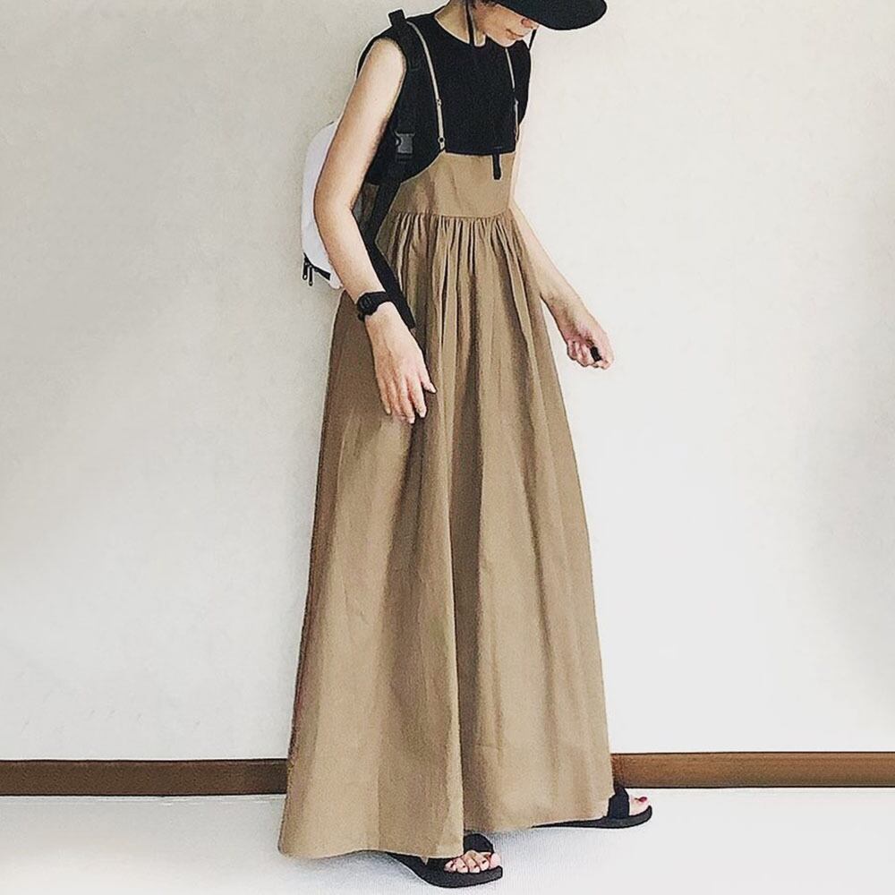 ◎【送料無料】2026年夏新作 ワンピース ロングワンピース マキシ丈 サスペンダーワンピース