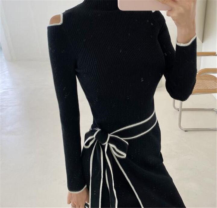 ニットワンピース 中・長セクション セクシー エレガント タイト デザインセンス 百掛け 暖かい シンプル 上品映え