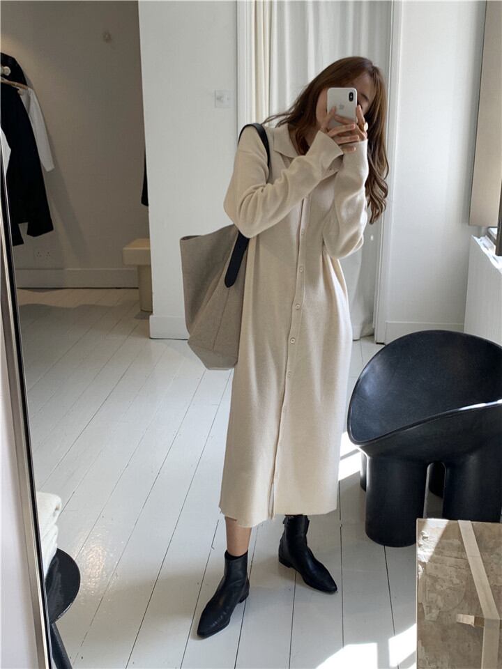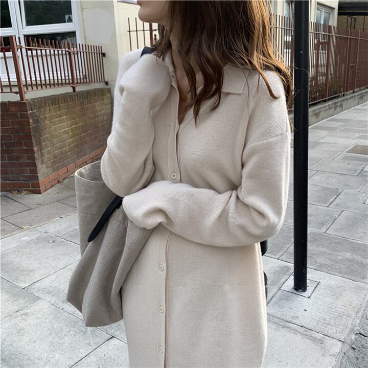◎【送料無料】セール大特価、1枚持って損なし!!早い者勝ち 体型カバー 着痩せ ログ丈 ニットワンピース 羽織り